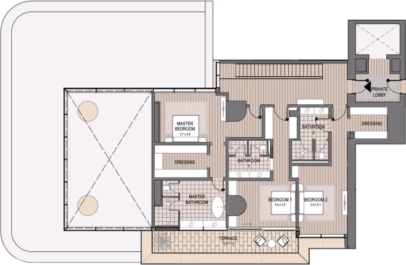 Le projet comprend 92 sublimes résidences, dont des appartements de 2 à 4 chambres et une sélection limitée de penthouses de 4 chambres, chacun disposant de son propre ascenseur. Les larges terrasses qui accompagnent chaque magnifique bien offrent d'exceptionnelles vues panoramiques sur la Marasi Bay et sur le célèbre Burj Khalifa.